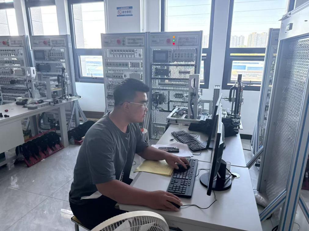 7月25日至8月25日,集训进入关键提升期。为整合优质训练资源,将李坪哲送往素有“金牌摇篮”美誉的河南经济贸易技师学院开展封闭特训。每日晨曦未露,他的身影已与实训室电路板指示灯同步亮起;近40℃高温的实训现场,汗水浸透图纸晕染电路符号,他始终铭记教练“真正的工匠,连汗水都要控制流向”的嘱托,指尖磨出薄茧仍坚持以毫米级精度调整PLC的I/O端子排线。这位00后选手将“台上一分钟,台下十年功”的古训融入日常,在每日14小时高强度训练中,累计完成电路故障排查200余次,优化迭代PLC程序20版,技能水平实现质的飞跃。